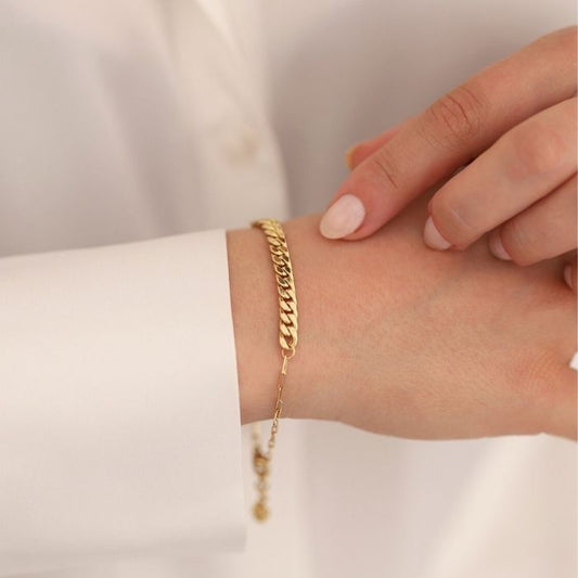 Goldarmband Damen : 14k Gold Dicke Panzerkette & Büroklammer - Armband
