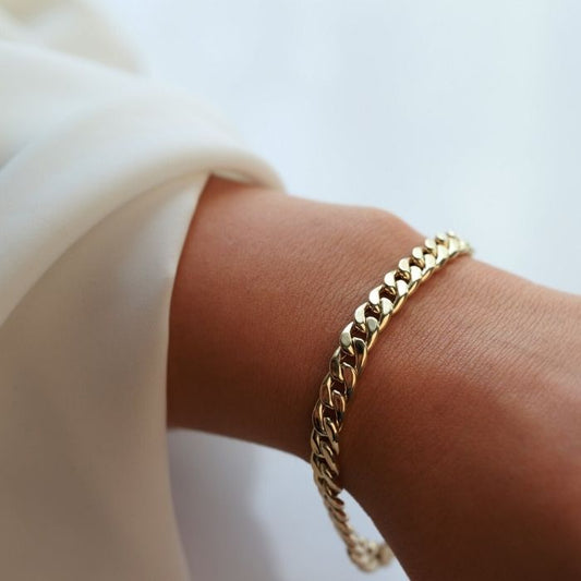 Goldarmband Damen und Herren : 14K Gold 6mm Kubanische Gliederkette - Armband