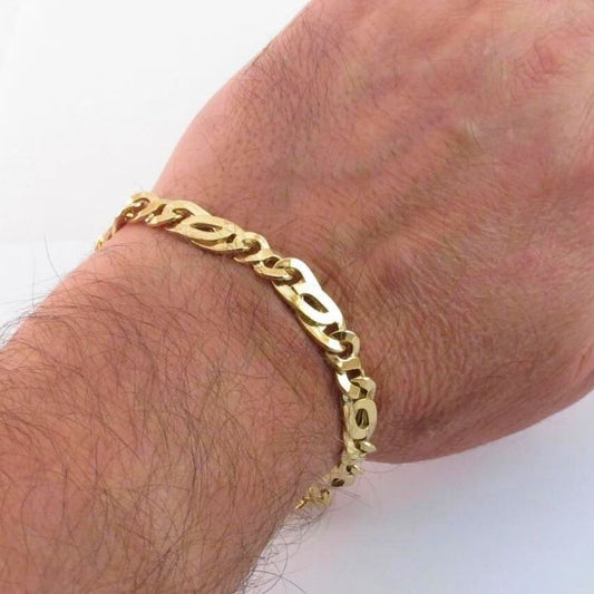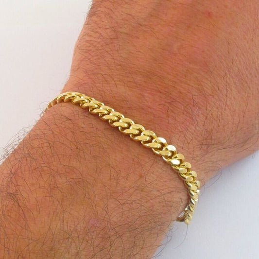 Goldarmband Herren 585 : 14 Karat Gelbold Miami kubanisches 7mm Gliederkette - Armband