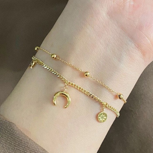 Goldarmband Damen 750 : 18K Gelb Gold Moon Star Chains Armband