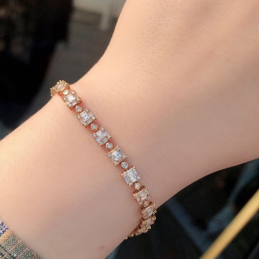Goldarmband Damen : 18K Rose Gold Echtes Diamant 3.0ct Luxus Quadratisch Au750 - Armband
