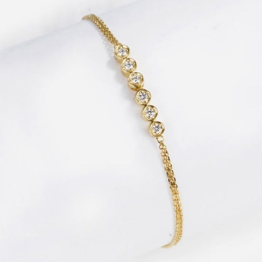 Goldarmband Damen : 18K Gelb Gold Runde Diamant - Armband