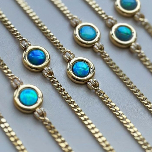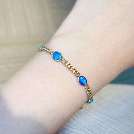 Goldarmband Damen : Blauer Opal 18 K Gold Kubanisches Kettenarmband
