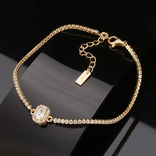 Silberarmband Damen : Tennisarmband Cubic Zirkonia 1,5mm CZ 14K vergoldet 925 Sterling Silber
