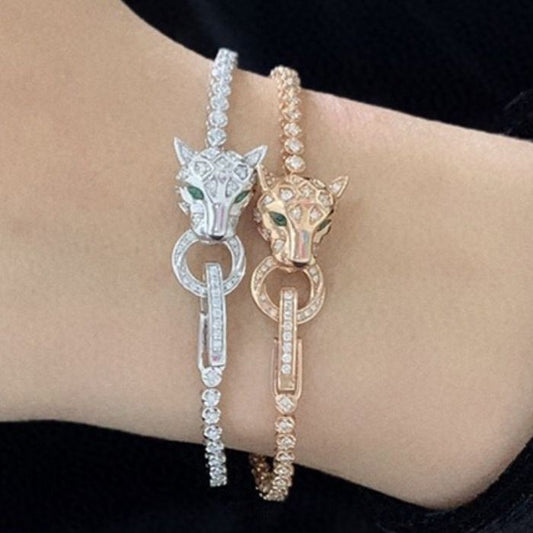 Goldarmband Damen : 18K Weiß Gold Diamanten 1ct Leopard - Armband