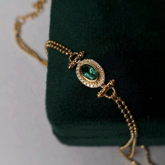 Goldarmband Damen : 18K Gelbgold Echt Diamant Natürlicher Smaragd - Armband