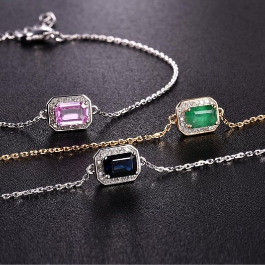 Goldarmband Damen 14 Karat Gold Fancy Octagonal Blau/Rosa Saphir/Smaragd Brillant Diamant - Armband