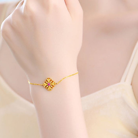 Goldarmband Damen : 18 Karat Gelbgold Rubin Vierblättriges Kleeblatt - Armband
