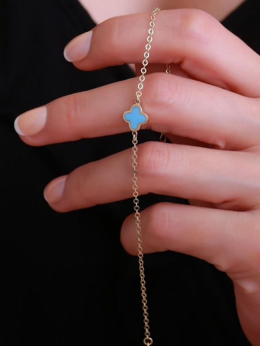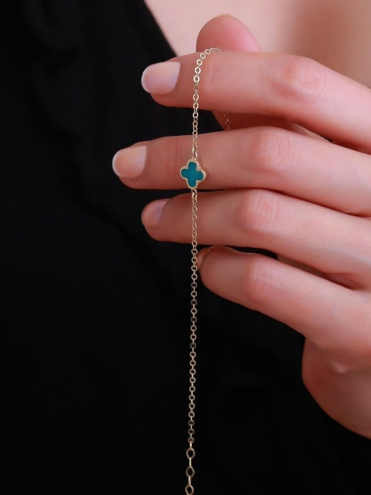Kleeblatt Armband Gold 585 : 14 Karat Gold Türkis emailliertes Kleeblatt - Armband