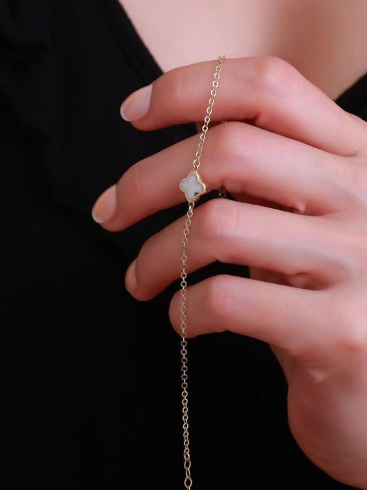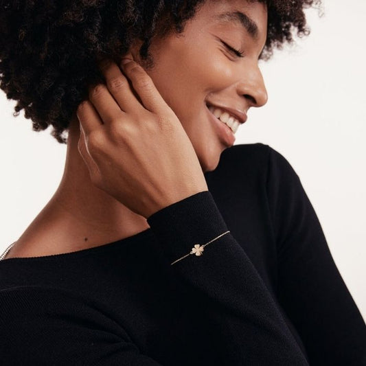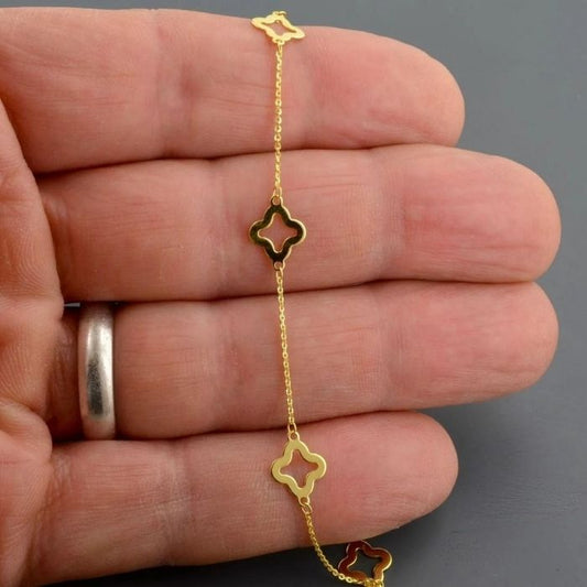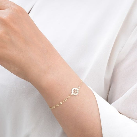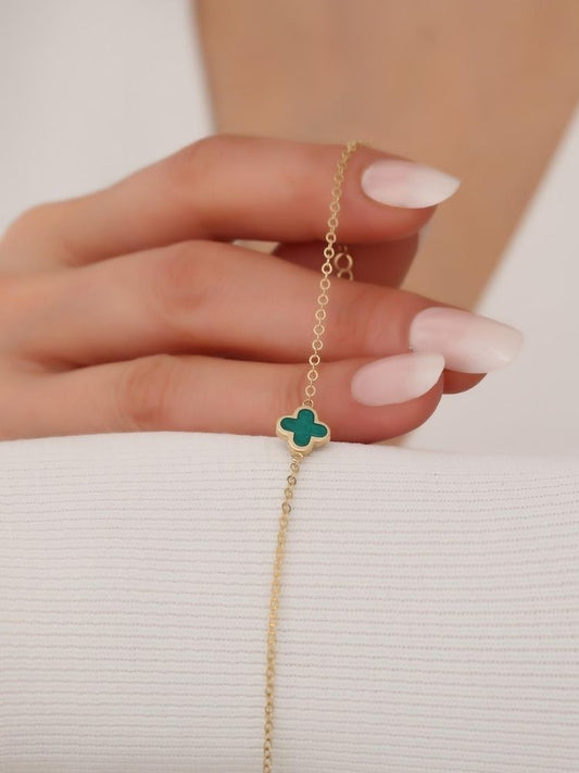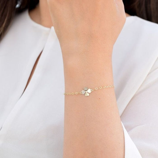 Kleeblatt Armband Gold 585 : 14 Karat Gold Vierblättriges Minimalistischer Glücksbringer - Armband