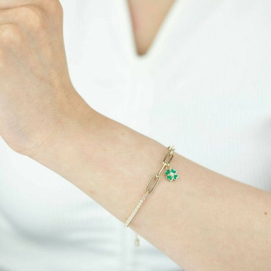 Kleeblatt Armband Gold 585 Karat Büroklammer Kleeblatt Glücksblume Charme Armband Echt 14k Gelbgold