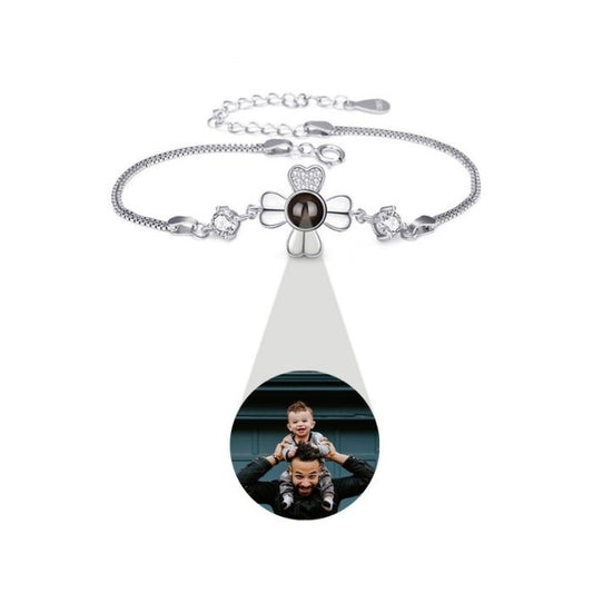 Fotoarmband mit Eigenem Foto : Kleeblatt Armband - Armband mit Bild Lupe - Echte Silber S925