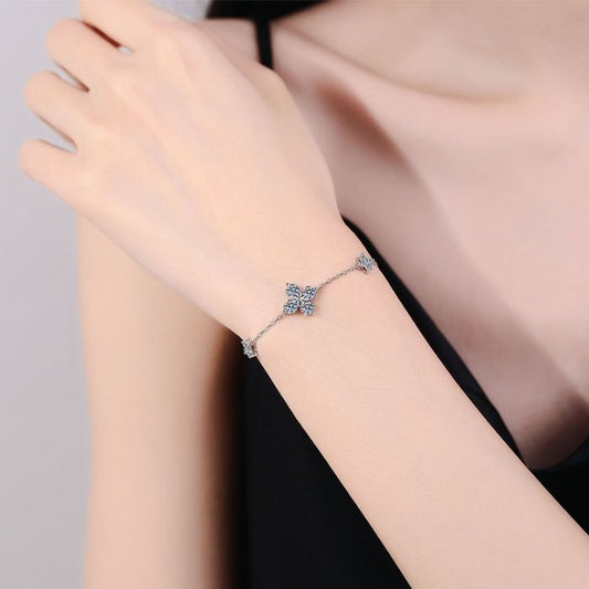 Kleeblatt Armband Silber : 4mm 1.2CTTW Moissanit Elegantes Kleeblatt 925 Sterling Silber Verstellbares Glücksarmband