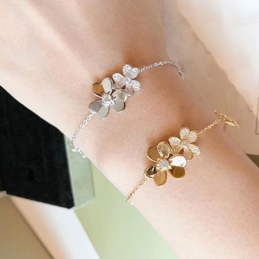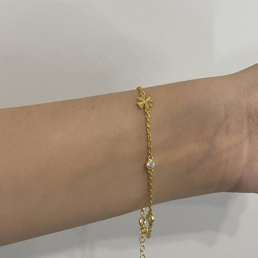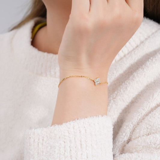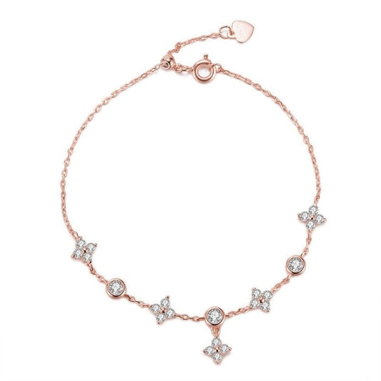 Kleeblatt Armband Silber : Echt S925 Vierblättriges Glücks Armband mit Zirkon