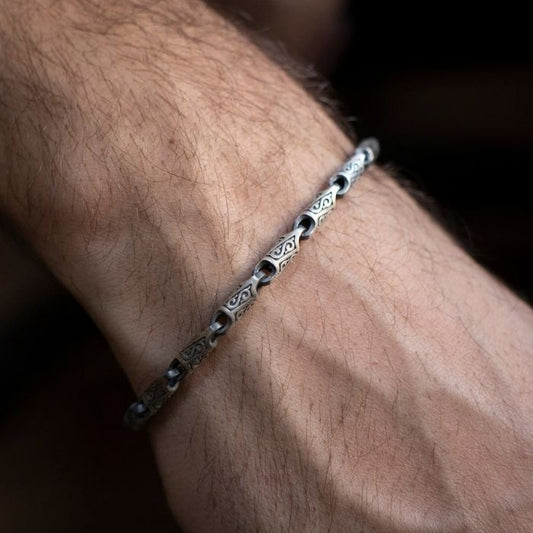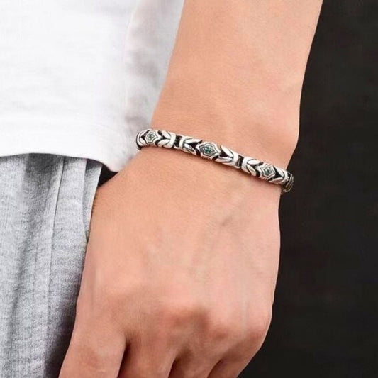 Silberarmband Herren - S925 Sterling Silber Vintage Friedensmuster - Armband