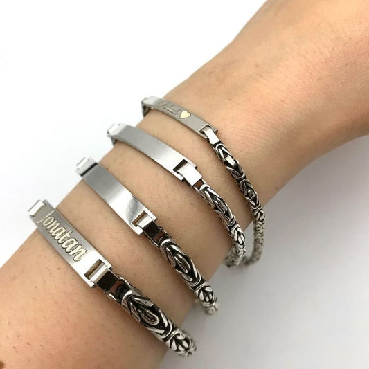 Königskette Armband Silber : S925 Byzantinische Personalisiertes ID Armband
