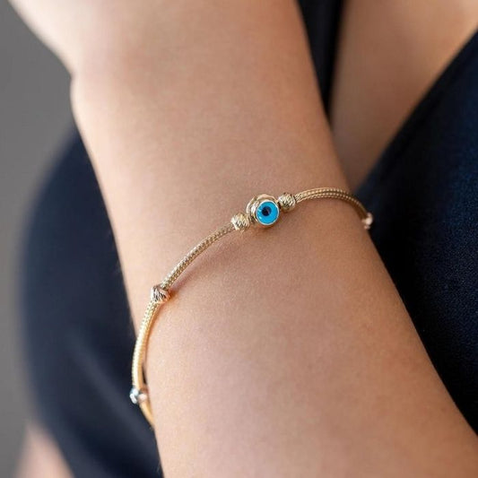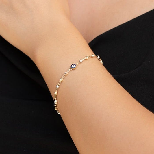 Nazar Armband Gold 585 : Gelbgold und Weiß Gold Böses Auge 3MM