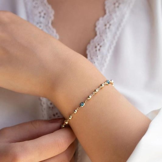 Nazar Armband Gold 585 : 14 Karat Gold Schutz Bettelarmband