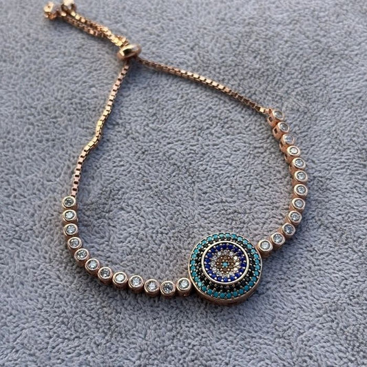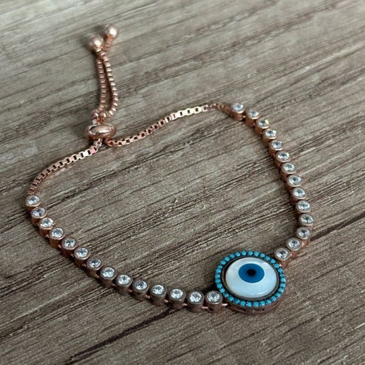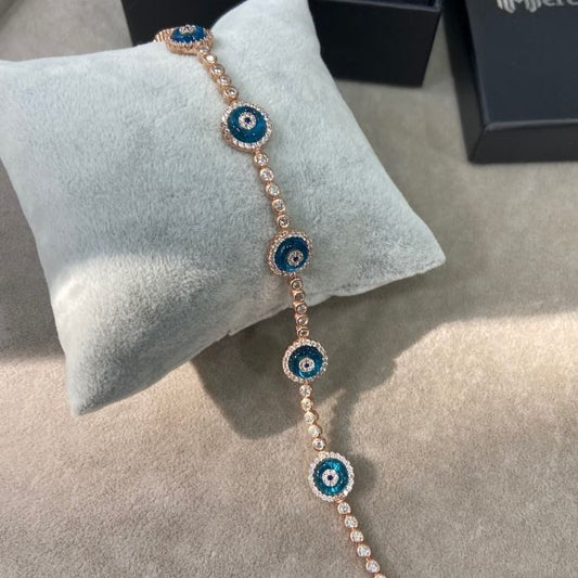 Nazar Armband Silber : S925 Blau Nazar Rose Vergoldet - Armband