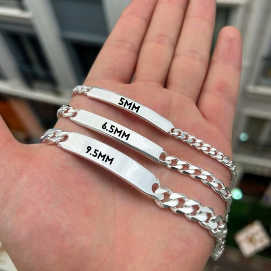 Silberarmband mit Gravur : 925 Silber Echtes Personalisierte ID Panzerkette Armband