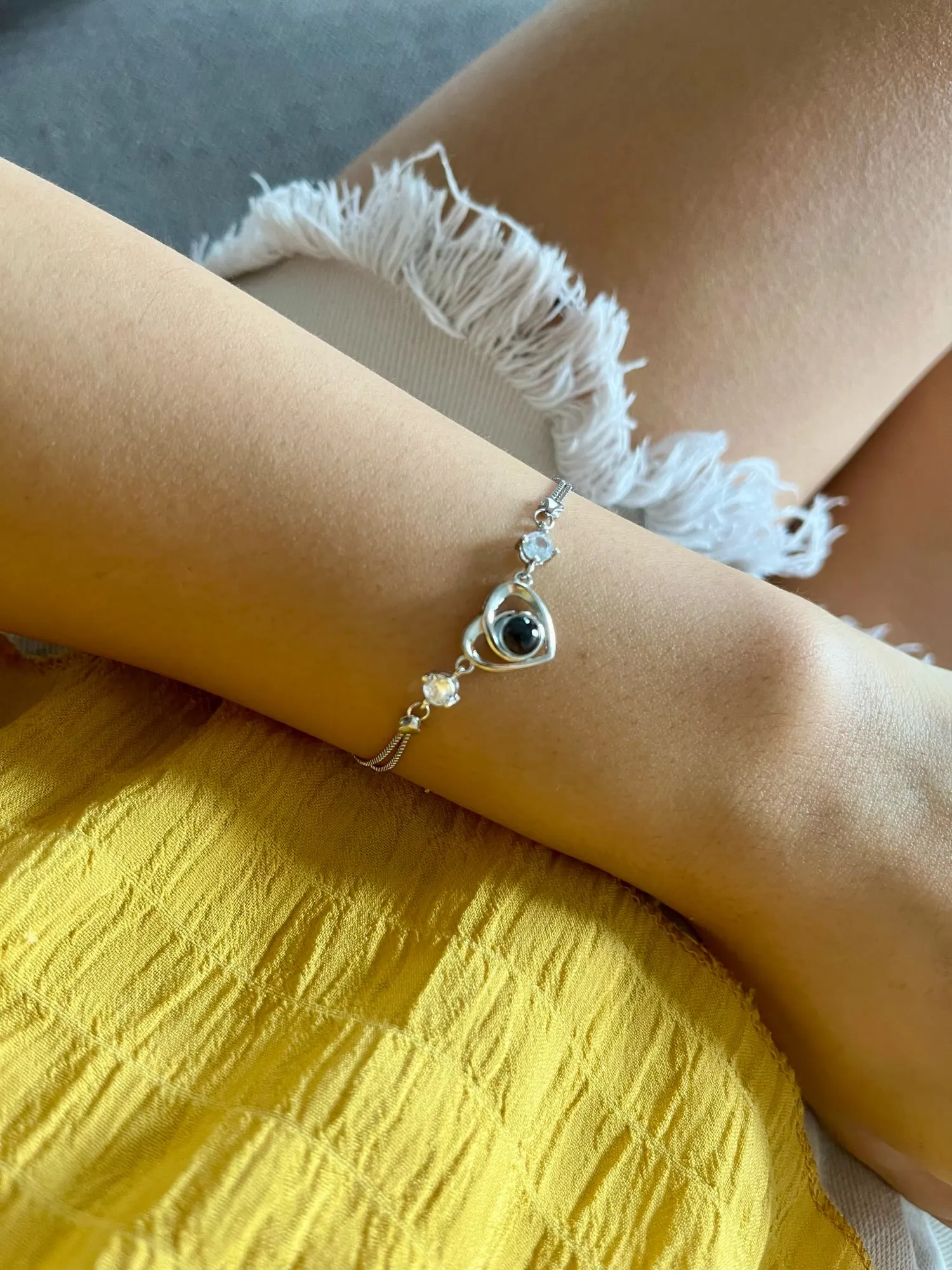 Fotoarmband - Besonderes Projektions Armband aus 925 Sterling Silber -Silberarmband mit Herz